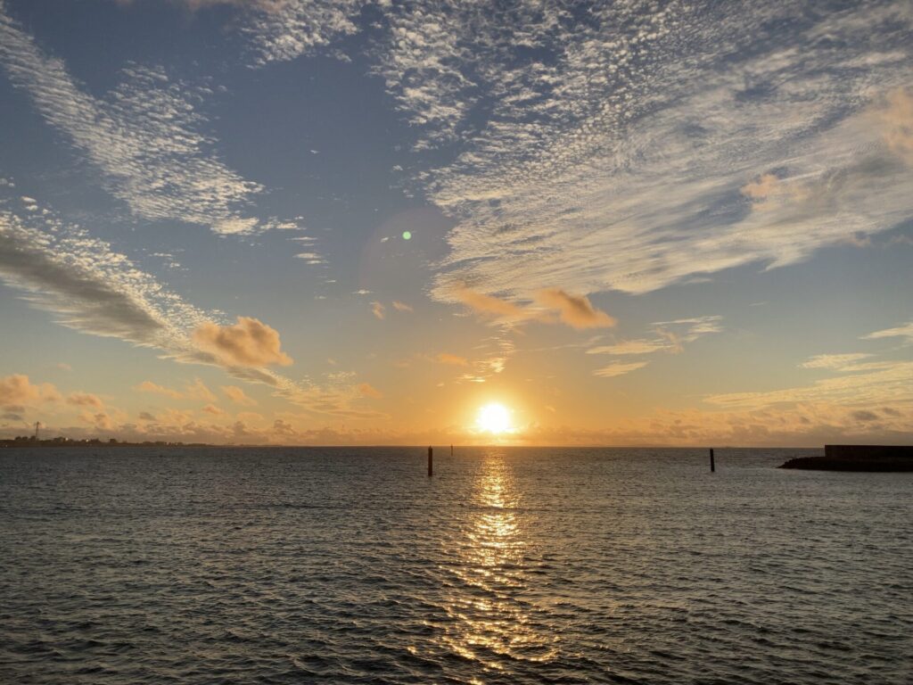 ↓大きな太陽が沈む、美々ビーチ目の前!