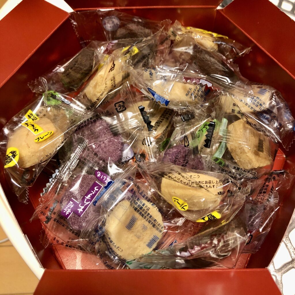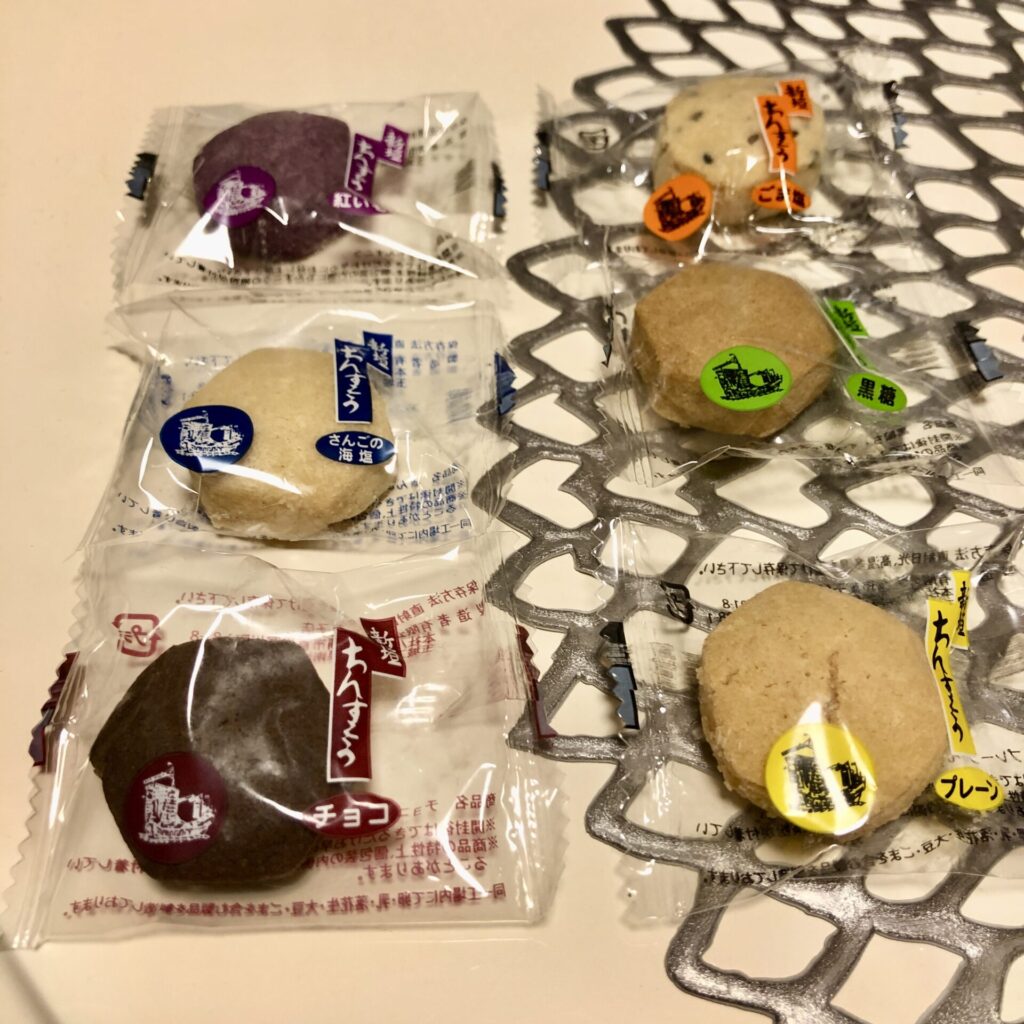 味は、プレーン、黒糖、ごま、チョコ、塩、紅イモの6種類