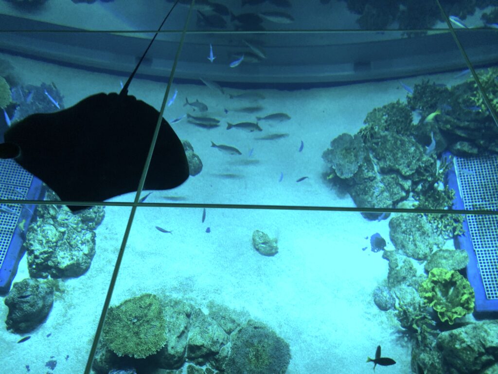 1階の水槽の真上を歩くことができます