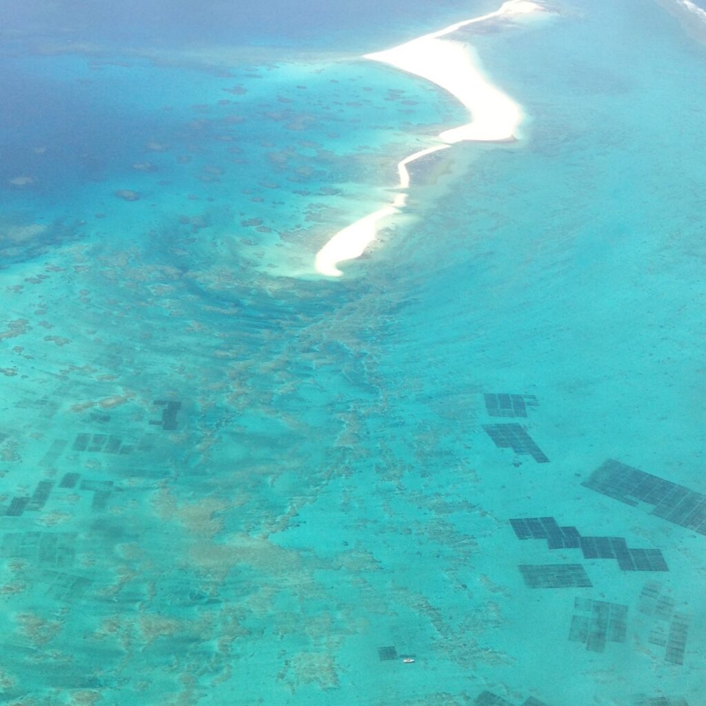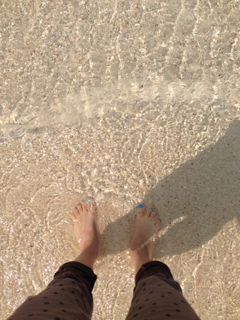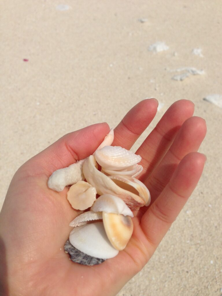 真っ白な砂浜….