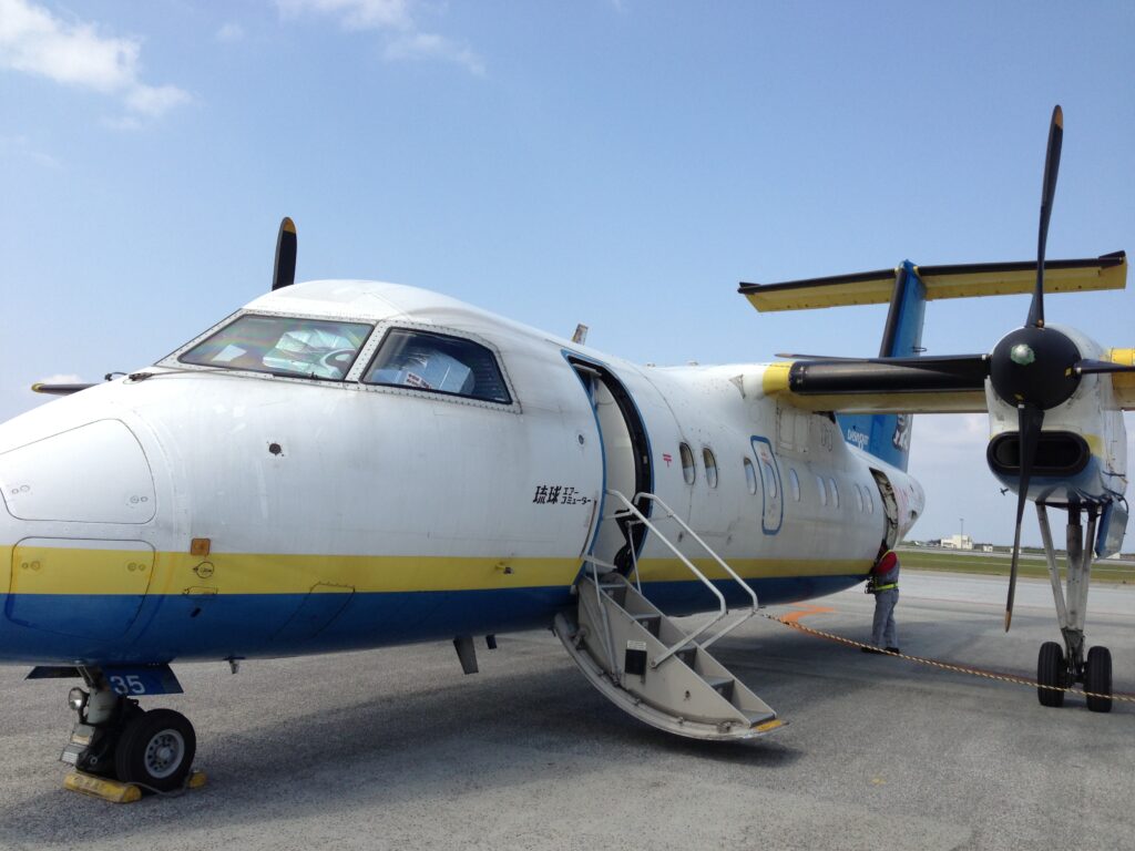 那覇空港からプロペラ機に乗り継ぎました