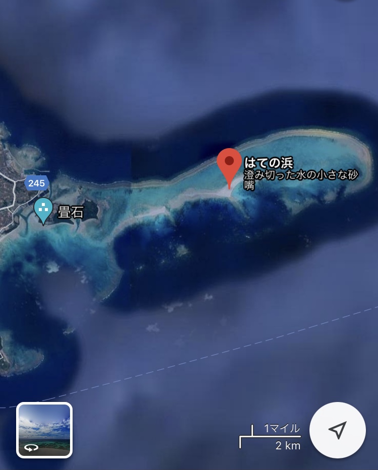 島の東側に、全長8Km程の【はての浜】と呼ばれる無人島があります