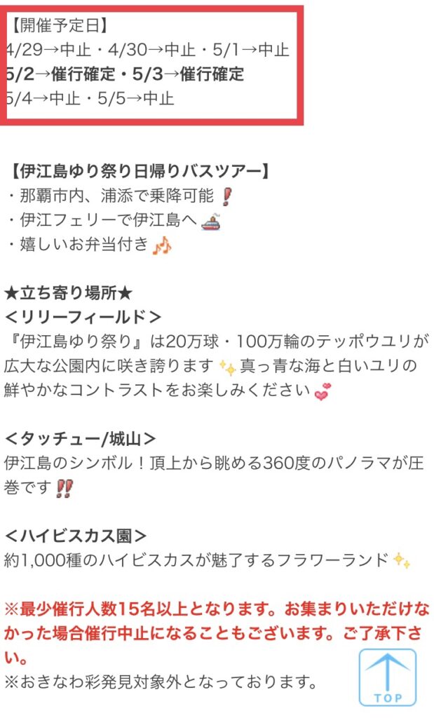 那覇や浦添から、日帰り観光バスツアーもあります!