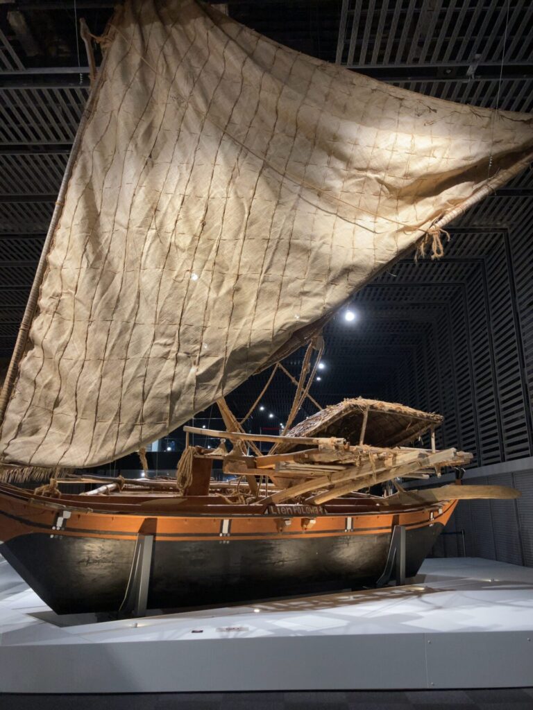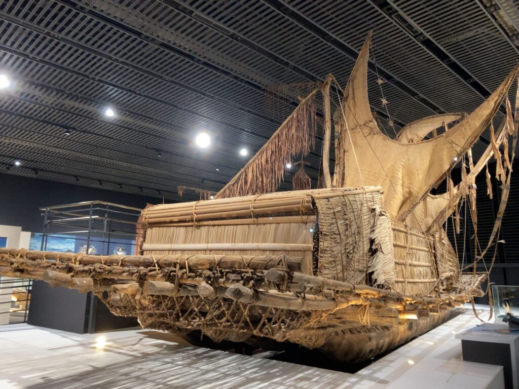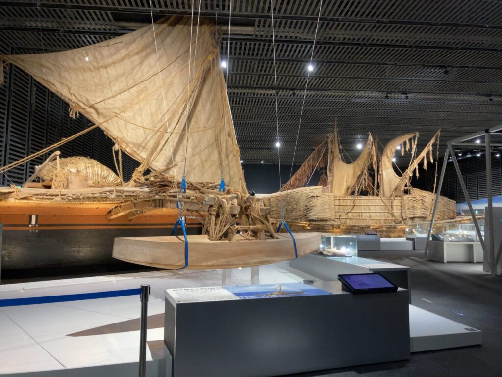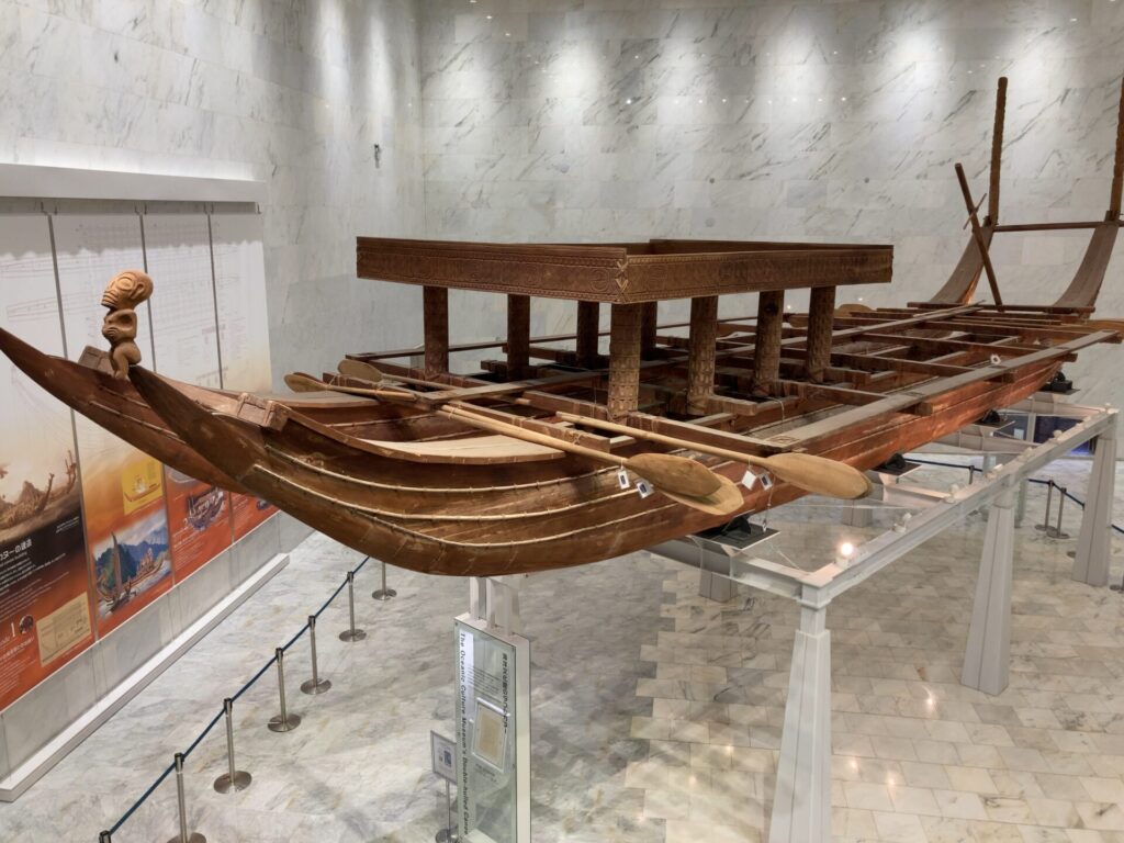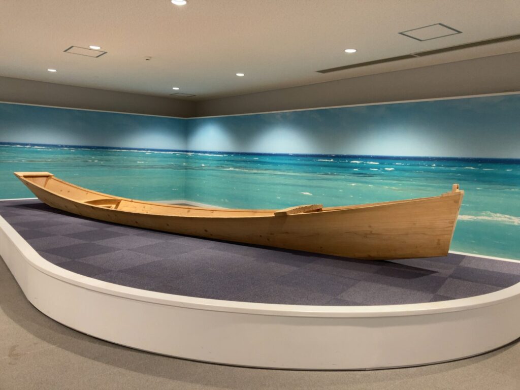 オセアニアゾーンの奥には、沖縄の漁で使われていた船『サバニ』が展示されています