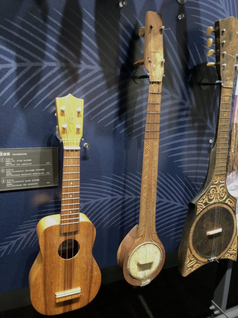 色んな形状の打楽器に、ウクレレやギターの原型となる弦楽器