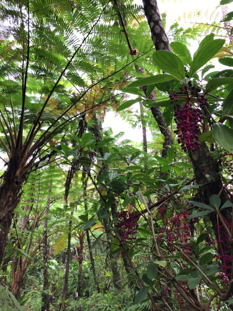 広大な森の中を歩いていると、あちこちから恐竜の鳴き声が聞こえ