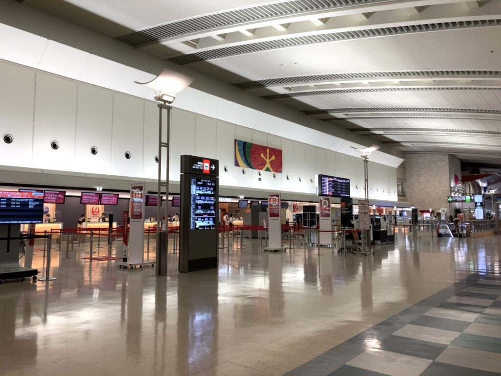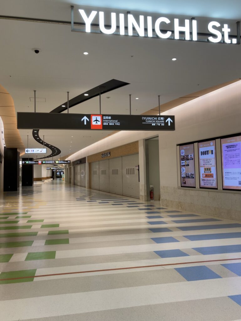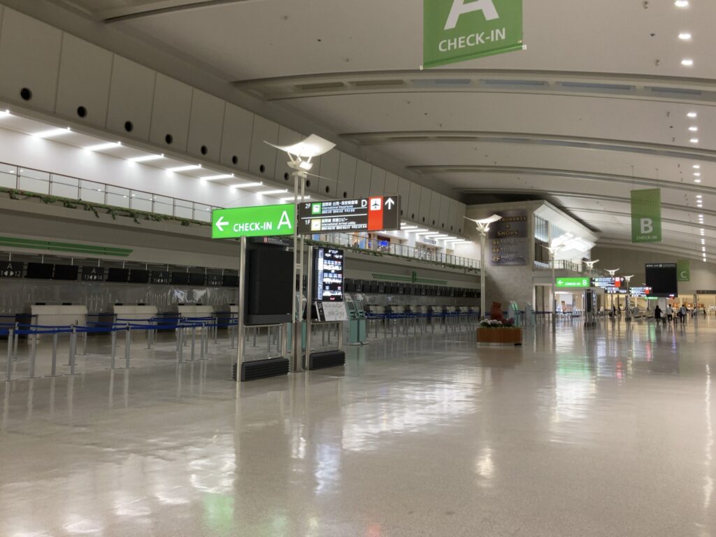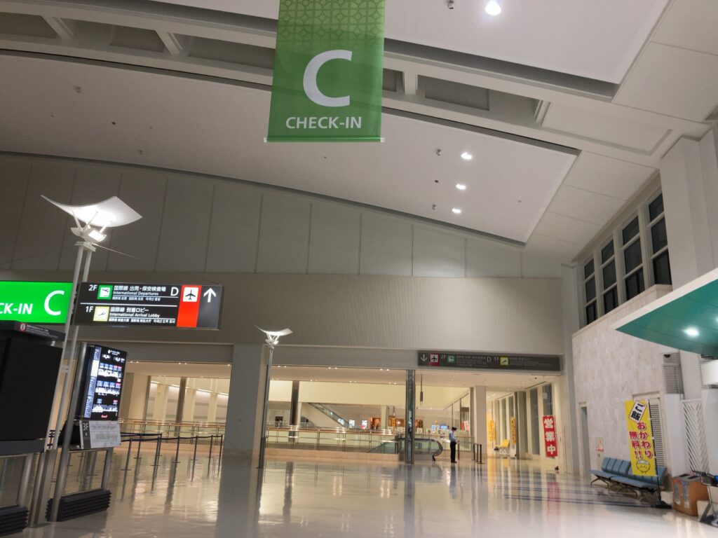 その先、2階右手奥、国際線カウンターは閉まっています