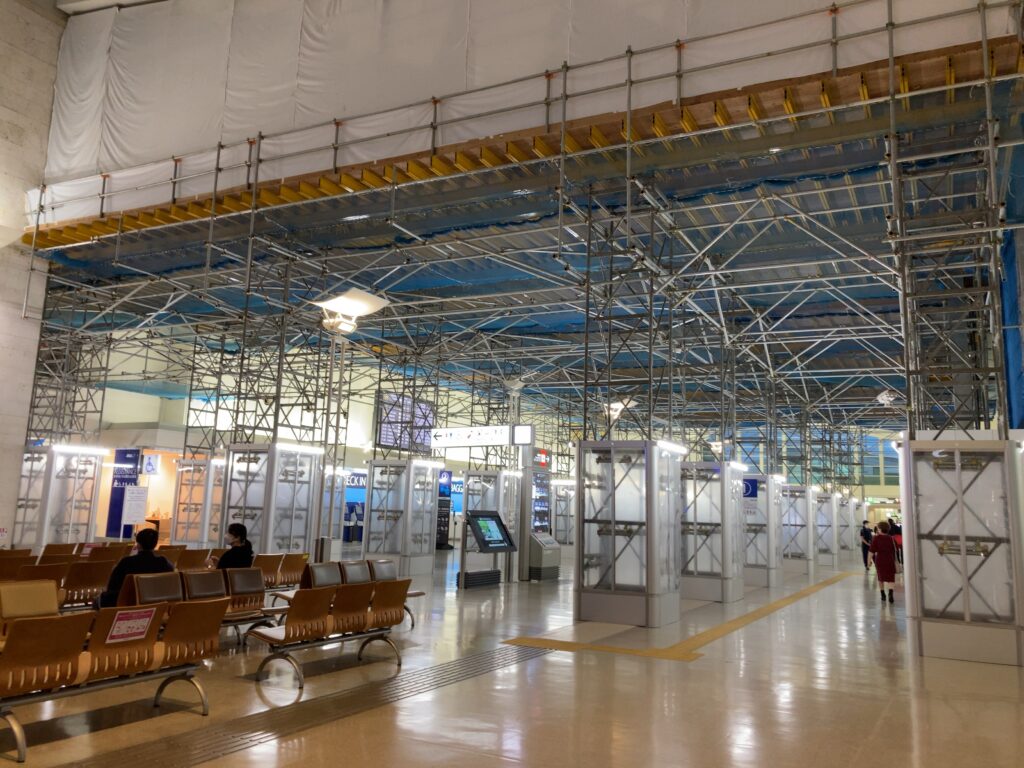 2階の中央あたり、ANAカウンターは工事中