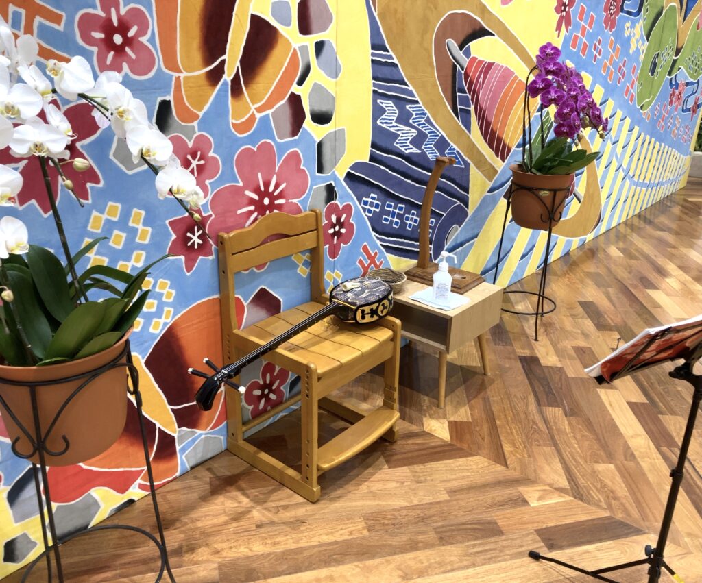 *フリーピアノ、フリー三線が置いてあり、自由に演奏できます