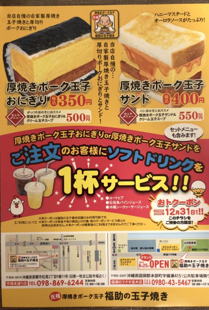元々『国際通り近くに、分厚い玉子焼きの入ったポーク玉子おにぎりの店ができた!』と話題になっていた『福助』さんー