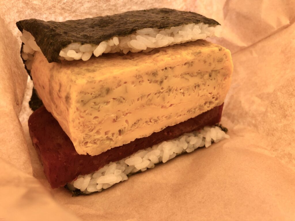 7,8センチはあるのではないか?という厚焼き玉子は、比較的味はあっさり目ですが、とってもジューシーで、ポークと海苔との塩気のバランスが、絶妙です!