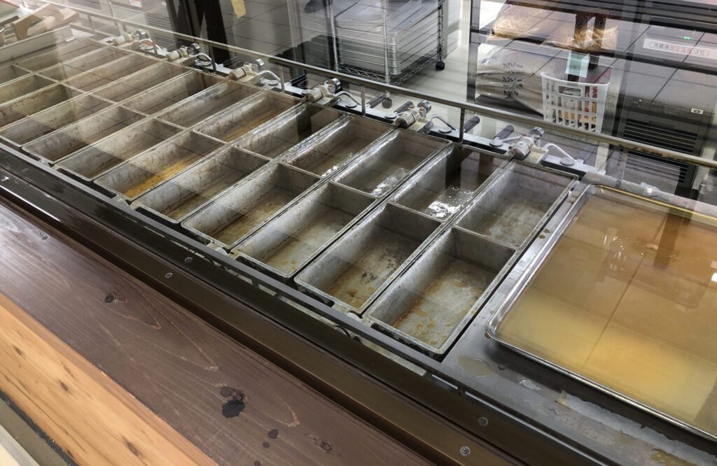 ガラス越しに、実際厚焼き玉子の調理シーンを見ることができます