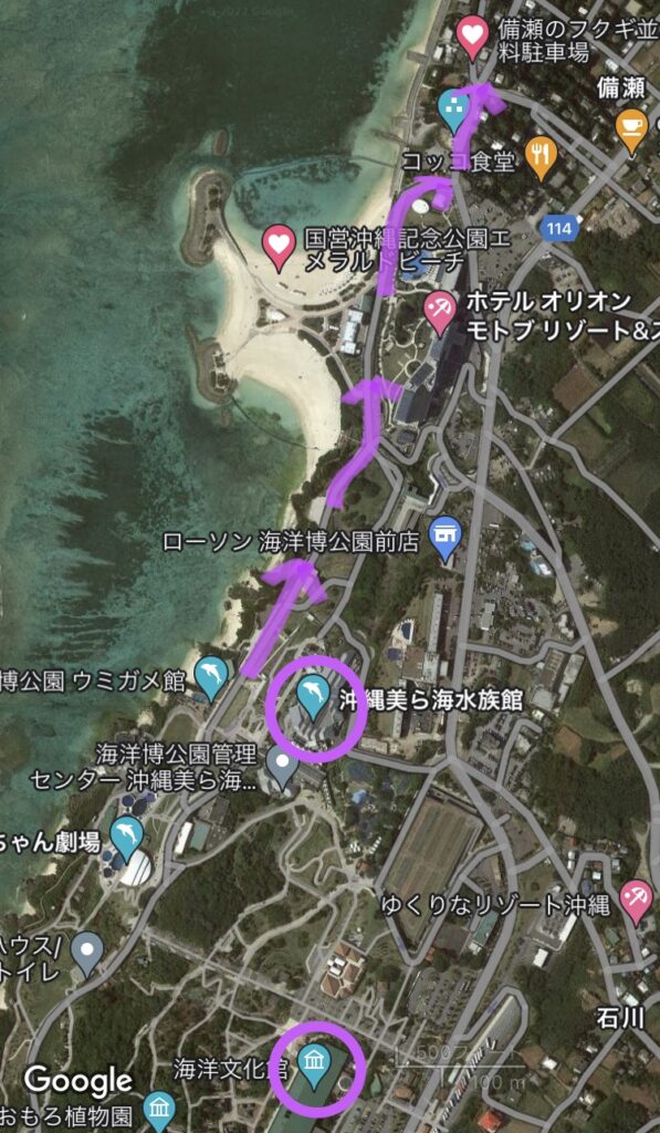 『美ら海水族館』から『エメラルドビーチ』を目指して、ゆっくり歩いて20分くらいかと思います