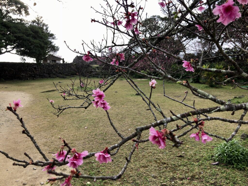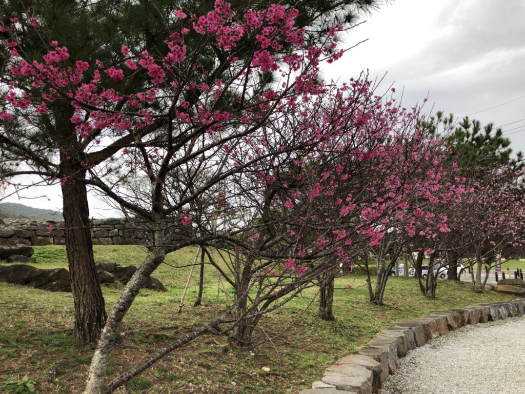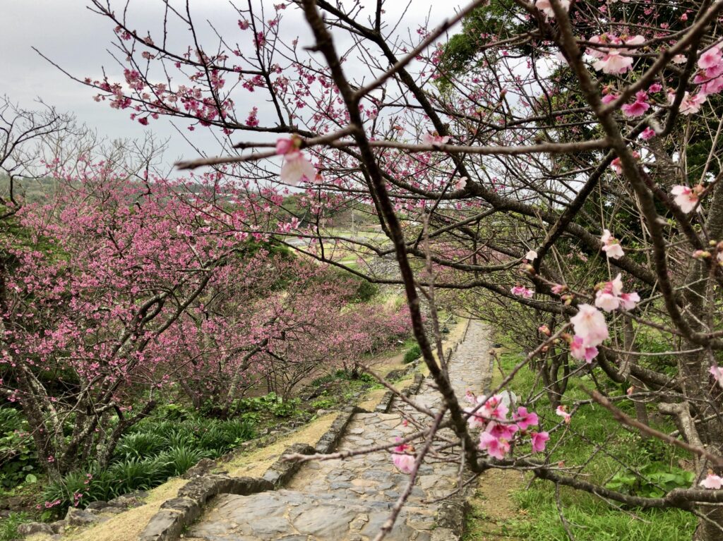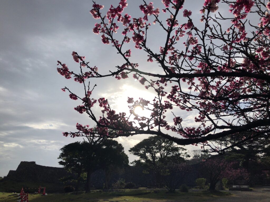 初めて見る沖縄の桜は色が濃く、本州とは異なる雰囲気の桜並木が新鮮でした